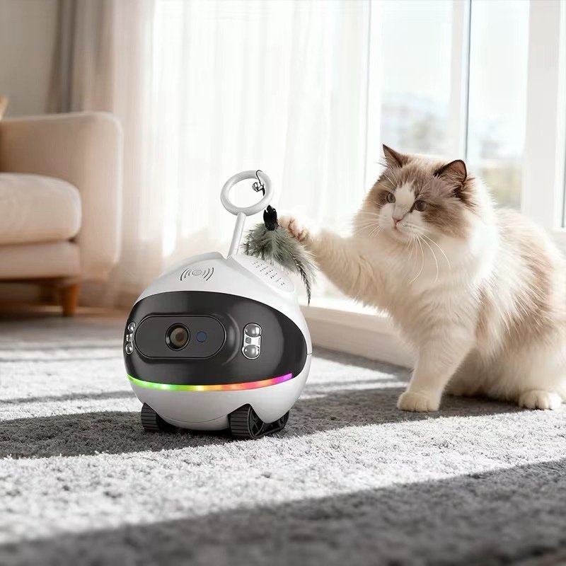 Feather head accessory, roly-poly setting, more interaction with pets Ambient light can be controlled via app, adding more fun for pets